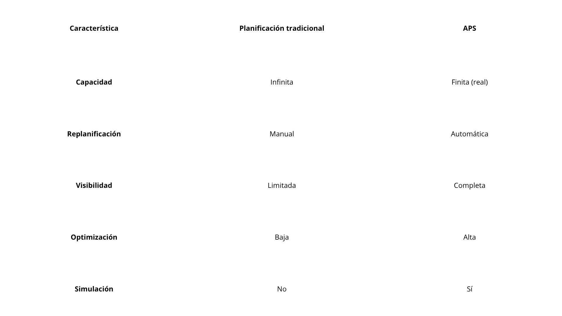 La diferencia clave es que el APS trabaja con la realidad operativa, no con suposiciones.